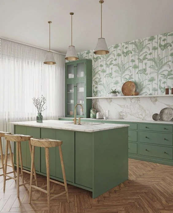 El imbatible papel pintado también se impone como una de las opciones favoritas para reemplazar los azulejos de cocina. Este recurso es perfecto para sumar estilo, dinamismo y mucha personalidad a este espacio tradicionalmente blanco, frío y austero.