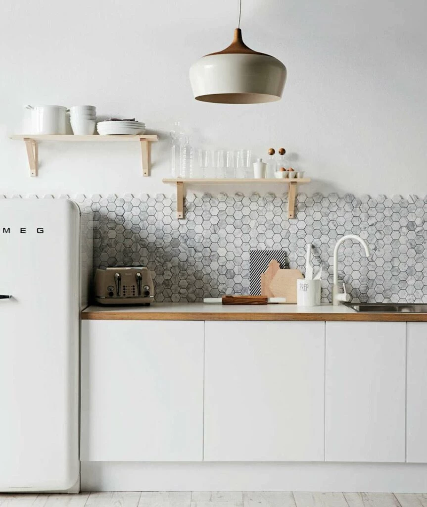 Cocinas y baños en tonos neutros y con mucha presencia de madera clara (como las nórdicas) abrazan las griferías blancas con fuerza.