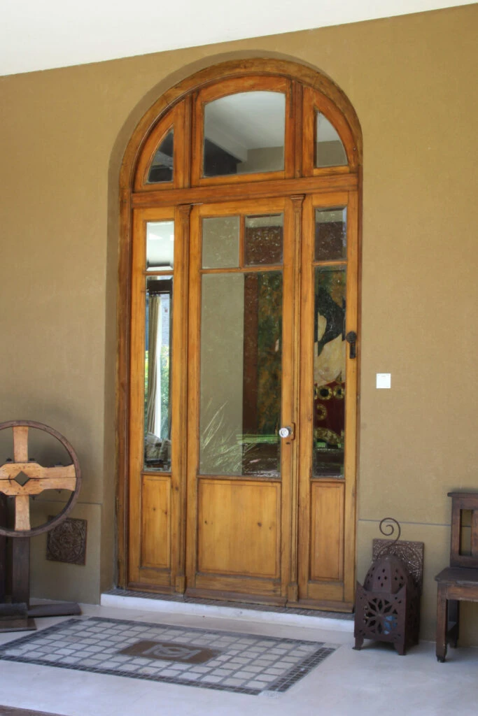 Si buscamos un estilo dramático, un gran recurso es aprovechar la altura disponible y crear una puerta tan alta como la altura lo permita.