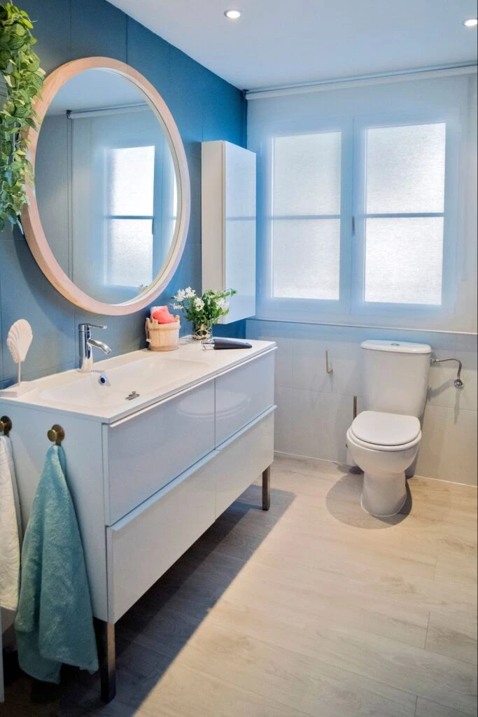 De baño simple y austero a luminoso con aires mediterráneos