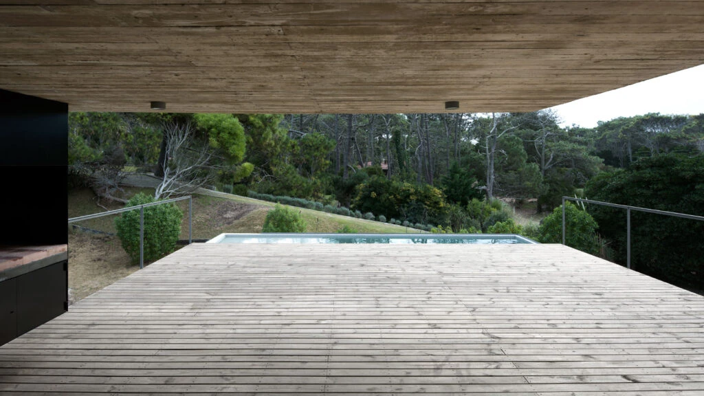 El área común se expande hacia un deck de madera. En su espacio semicubierto se arma, junto a la parrilla, un lugar de estar y comer, mientras que en su espacio descubierto se ubicó el solárium equipado en su remate con una piscina.
