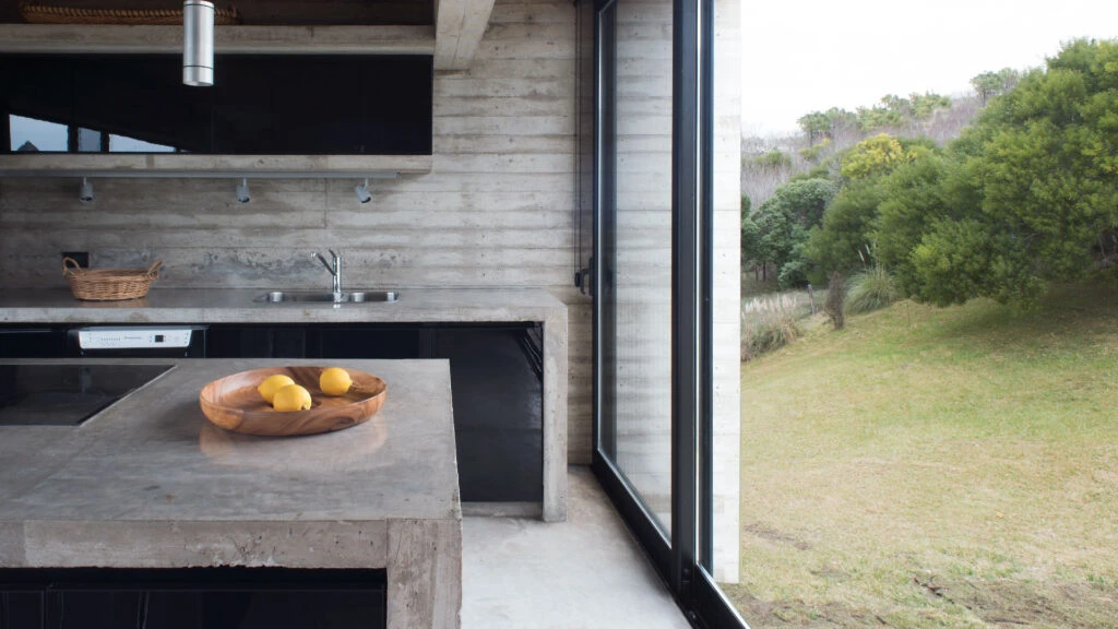 Esta casa de descanso, diseñada por el estudio del arquitecto Luciano Kruk, lleva el nombre de su localidad y se dispone en un lote en esquina sobre la primera calle paralela al mar.