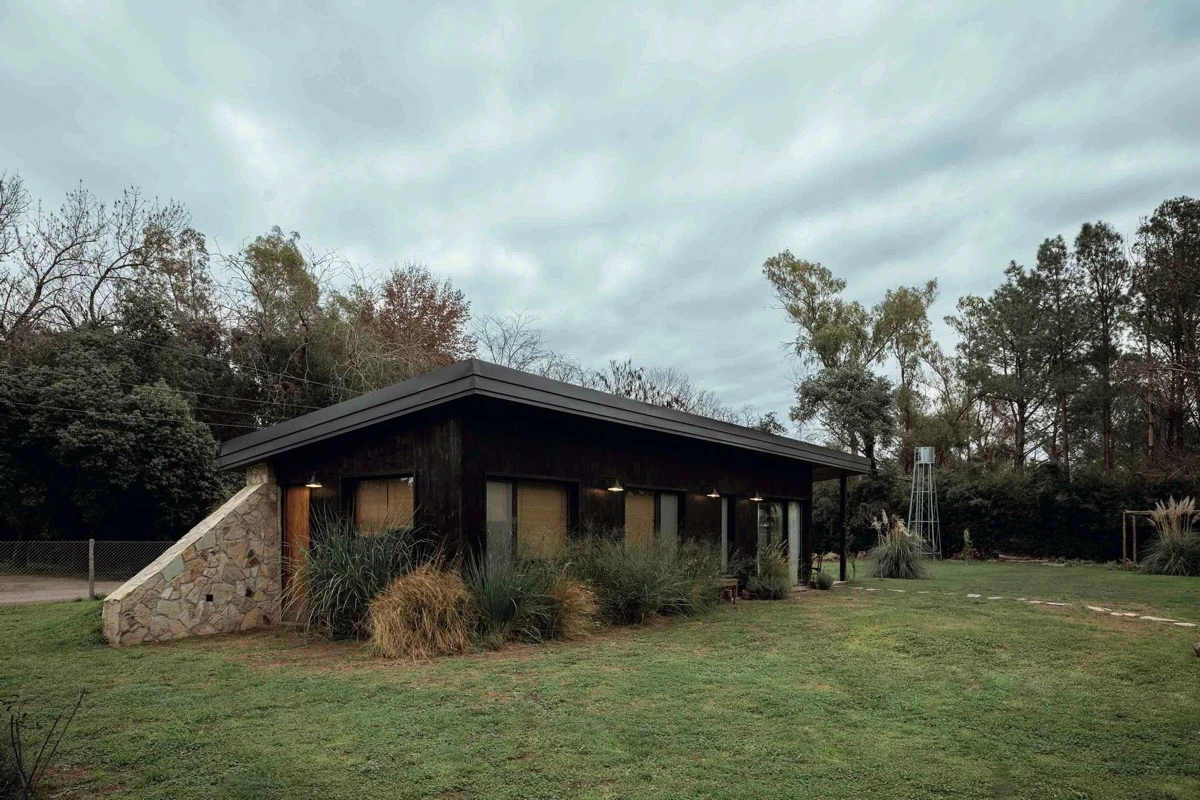 Es como una casita de cuentos, pero es real. En Mercedes, provincia de Buenos Aires, una vivienda fue concebida como un refugio rural, usando la madera, la piedra y el microcemento como materiales básicos.