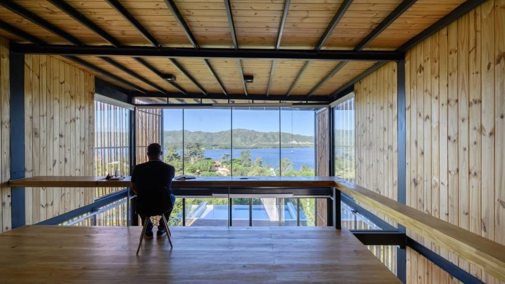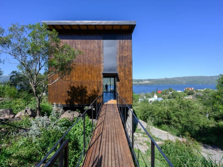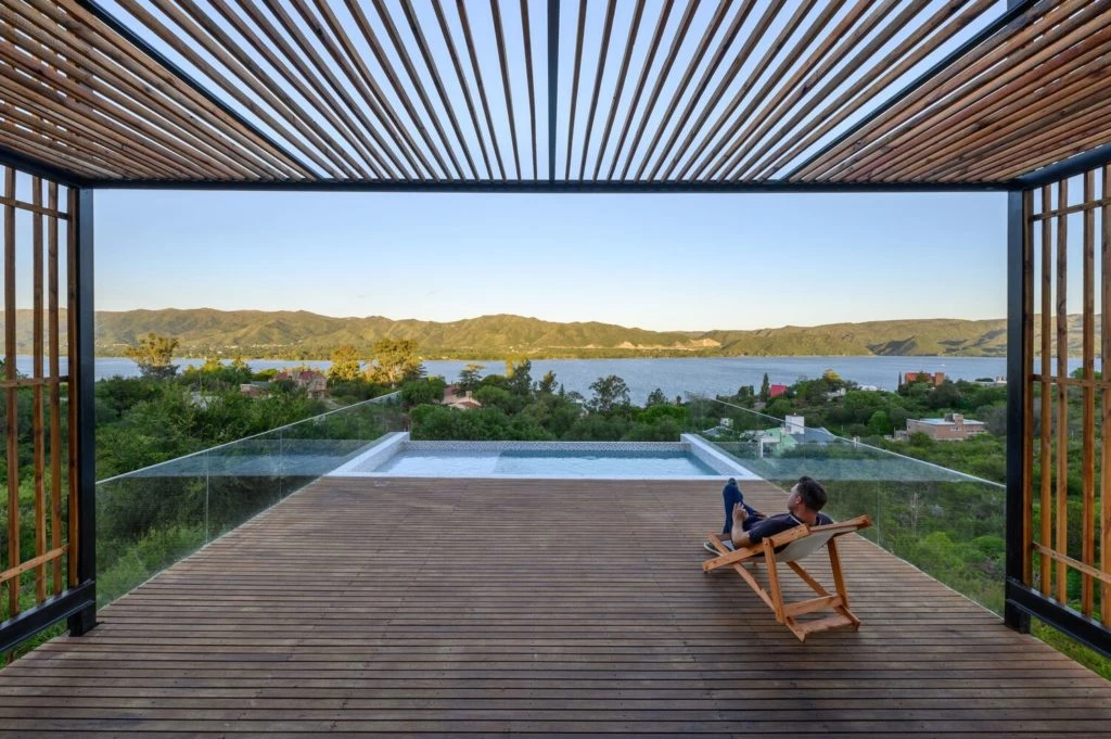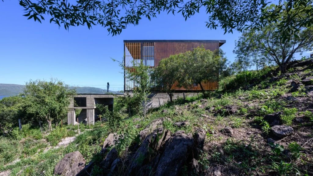 La vivienda se encuentra ubicada en el territorio serrano cordobés, sobre los márgenes del lago San Roque.