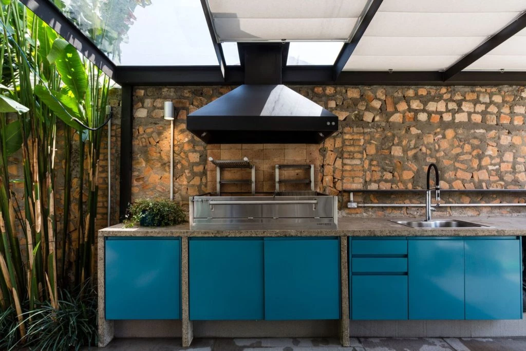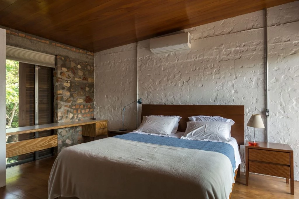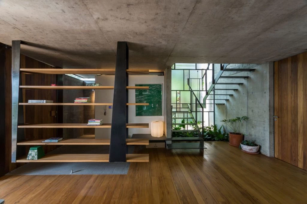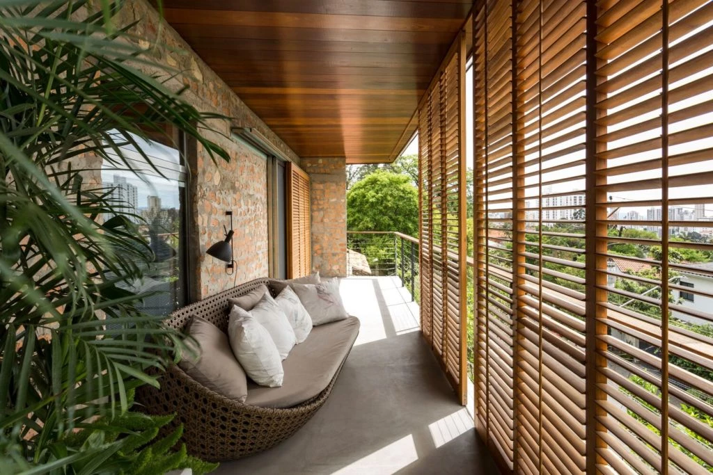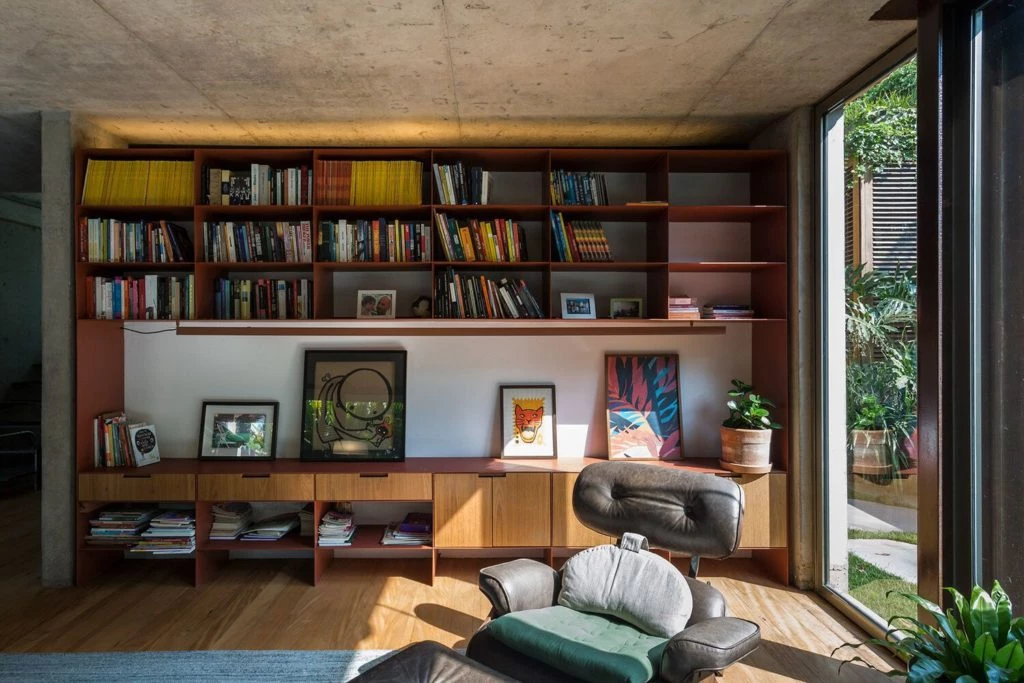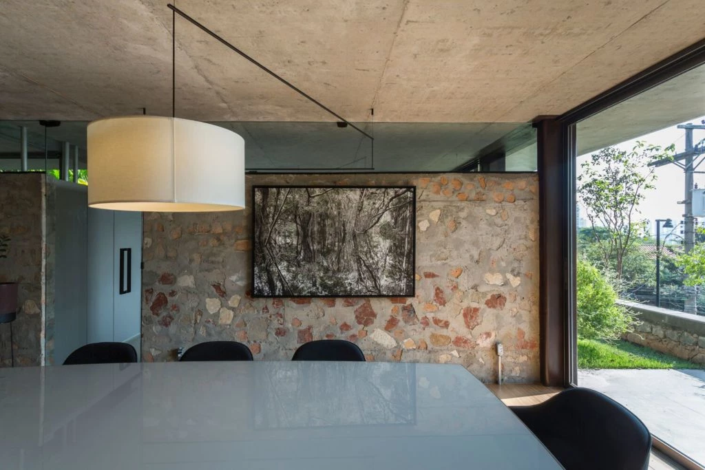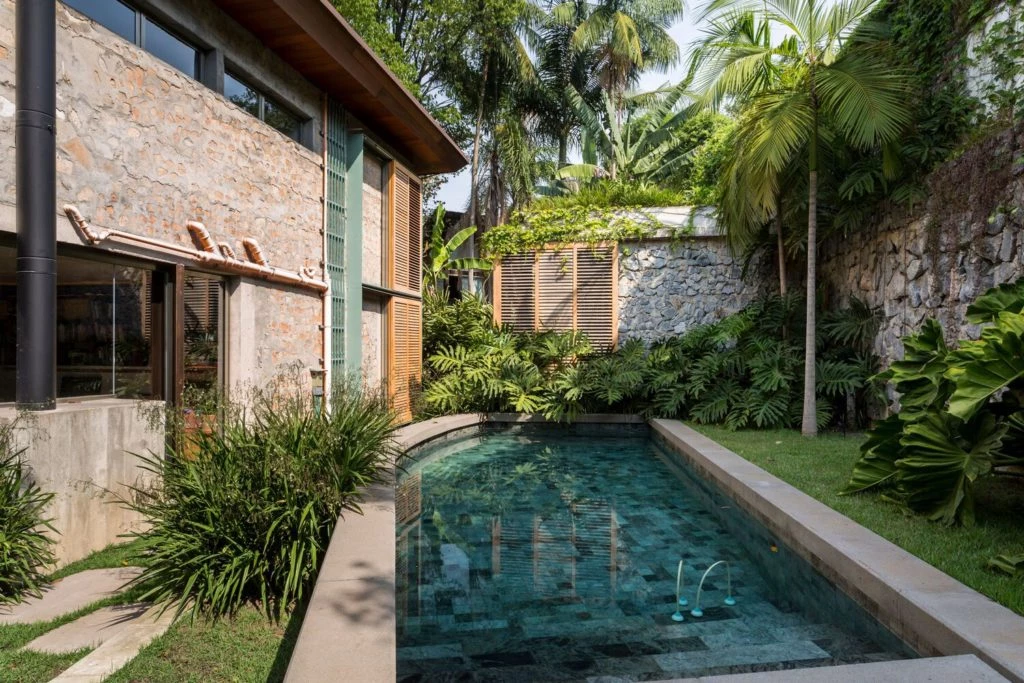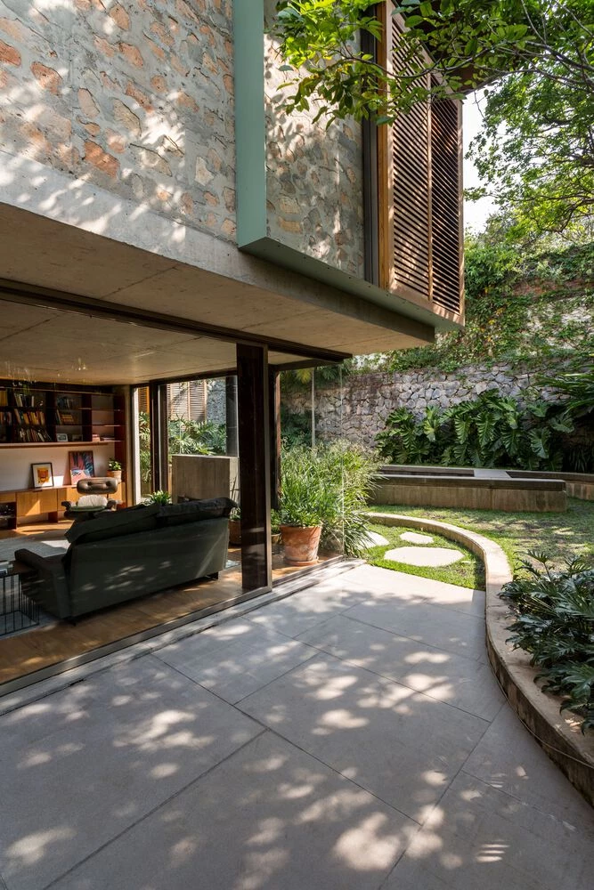 En esta casa brasilera se mantuvo cierta volumetría típica del barrio y se buscó no sólo una armonía espacial, sino repensar y potenciar técnicas constructivas, complementarias, eficaces y económicas, en la poética espacial.