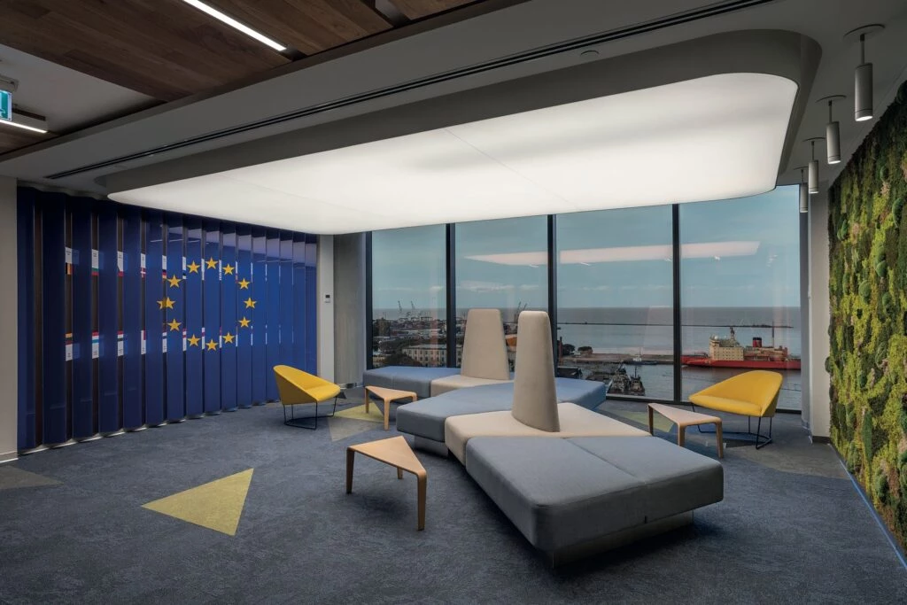 Luminosas y dinámicas. Así son las nuevas oficinas de la delegación de la Unión Europea en la Argentina, que decidió abandonar el bello palacete francés que ocupaba en el barrio de Recoleta para mudarse a Catalinas Norte en la costanera.