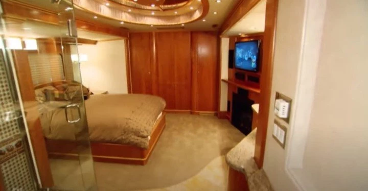 Entre los detalles curiosos del vehículo se encuentra la presencia de un televisor en la puerta del lavabo o de una ducha de más de 40.000 euros con paredes hechas de cerámica artesanal.