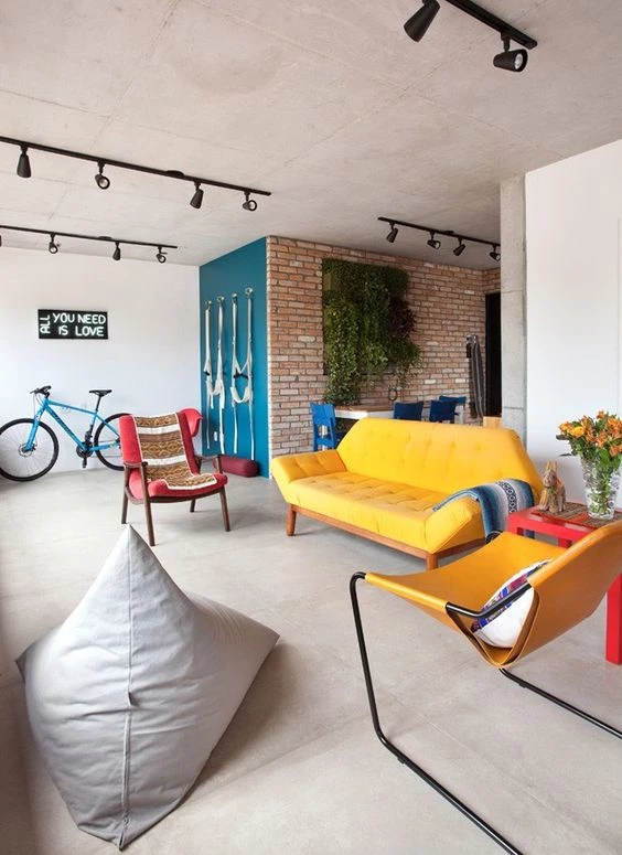 A diferencia del industrial tradicional en el que los tonos oscuros y neutros son los protagonistas, acá lo son los colores vivos, blancos rotos y terracota. De esta manera, se gana un plus de modernidad, luminosidad y dinamismo.