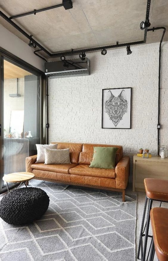 La arquitectura a la vista sigue siendo uno de los pilares básicos del estilo industrial en todas sus variantes. Paredes de ladrillo, columnas de hierro u hormigón, tuberías y vigas en el techo, quedan al desnudo.