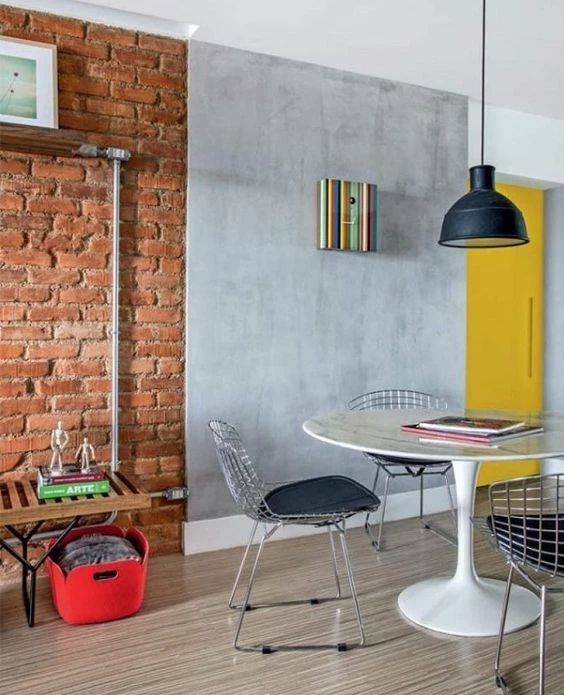 El cemento alisado sigue vigente y se consagra como uno de los materiales que no pueden faltar en cualquier estilo industrial. Se lo puede encontrar revistiendo paredes, pisos y mesadas.