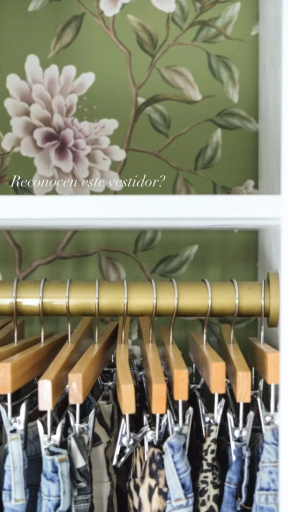 Además, tiene un espacio exclusivo para colgar jeans, con barrales dorados que combinan a la perfección con el mural de la pared, y que son tendencia esta temporada.
