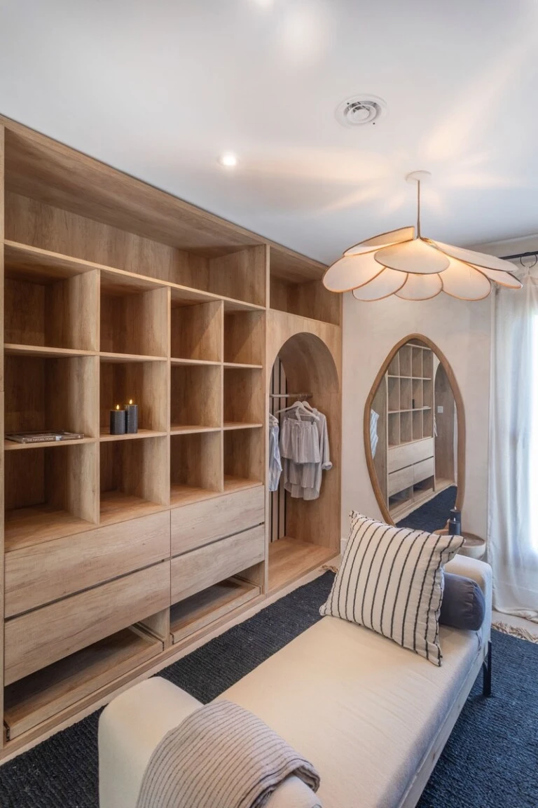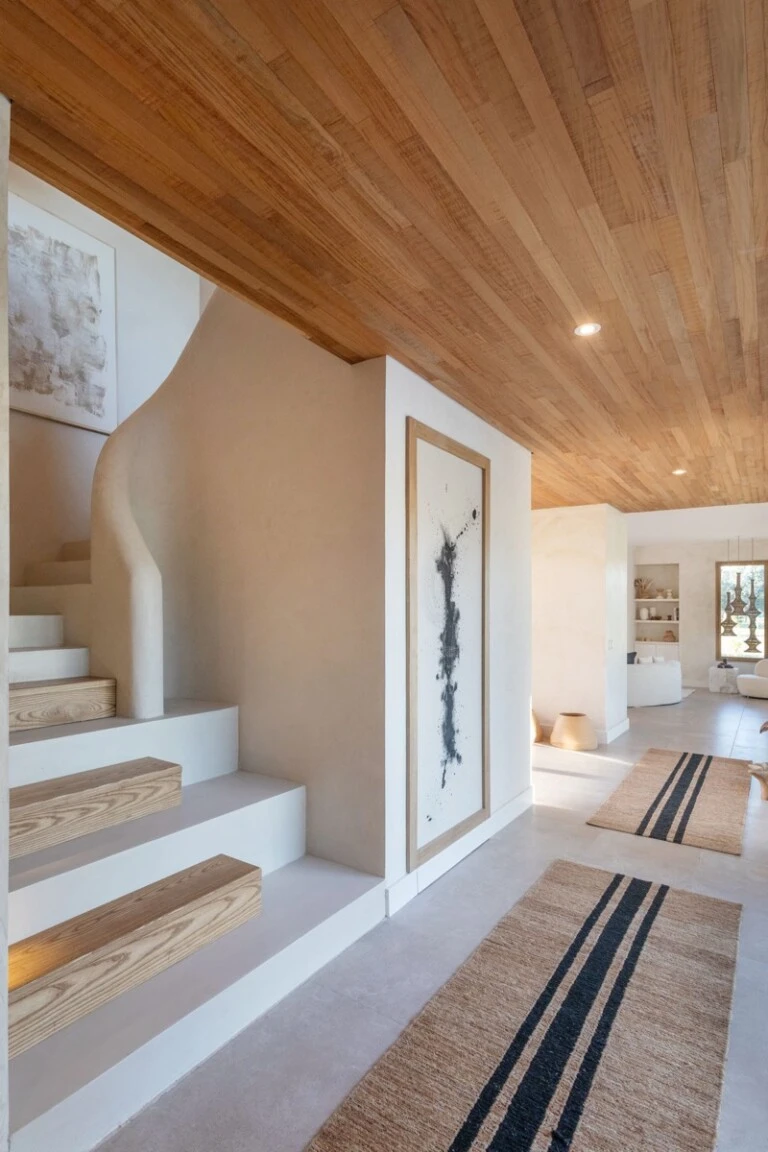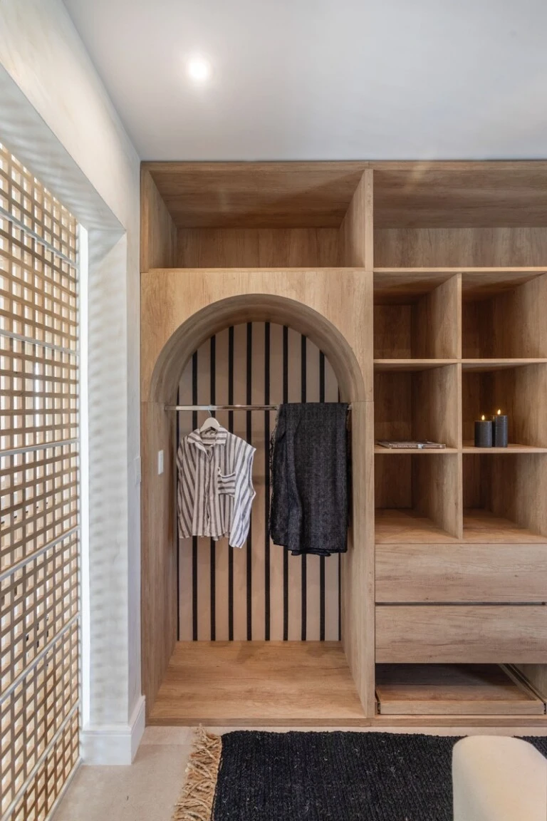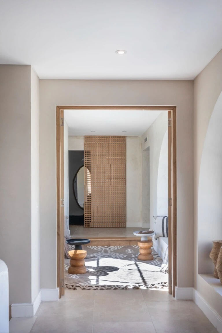 Curvas suaves, nichos y una paleta neutra construyen una atmósfera cálida, luminosa y fluida.