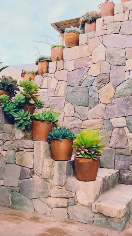 Cactus y suculentas en macetas de barro decoran el interior y el exterior.