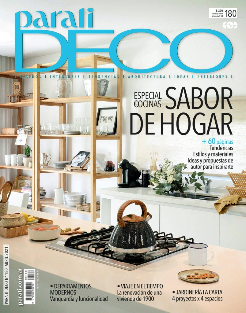 Los objetos y accesorios hablan del amor por los viajes de la anfitriona de esta visita a la cocina que fue la imagen de tapa de la edición número 180, de abril de 2021, de la revista Para Ti DECO.