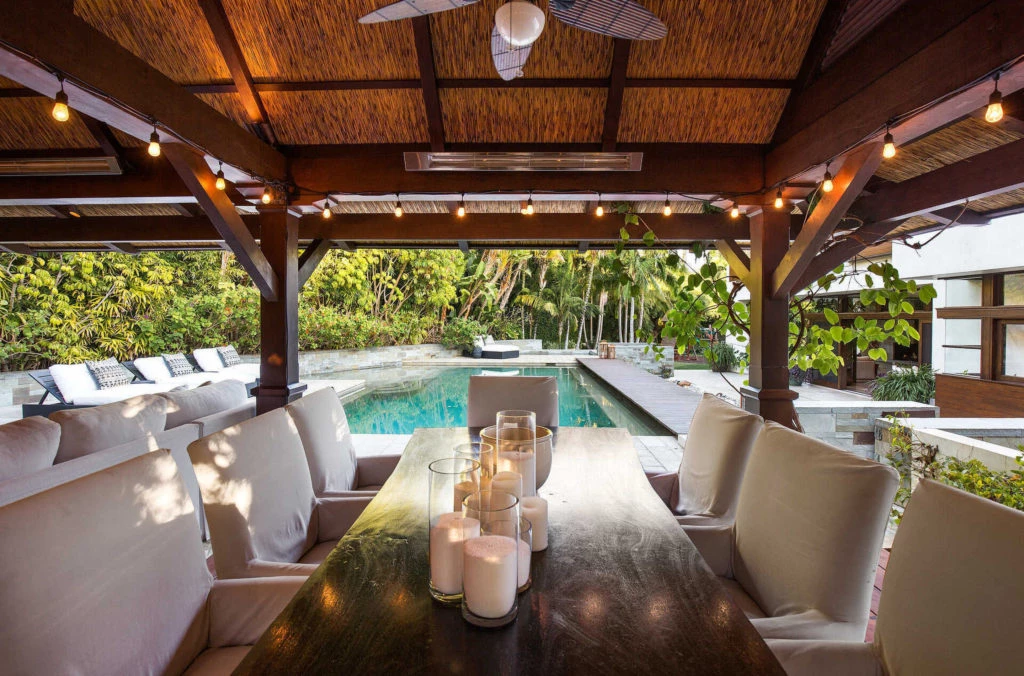 Terminando con el recorrido por la casa del actor y su esposa, nos encontramos con los lujosos exteriores, los cuales cuentan con una súper piscina, spa, estanque koi y lanai, y un quincho para comer y descansar al aire libre.