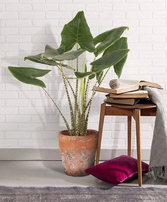 Esta variedad de Alocasia -que se roba todos los flashes y desfila por las diferentes plataformas de inspiración-, es originaria de Sudamérica y se destaca por encima de otras de su especie.