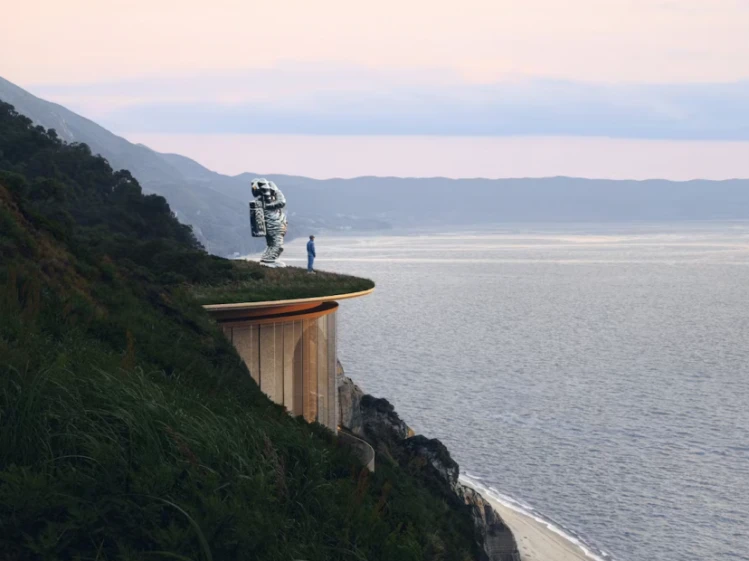 De película. Not a Hotel Tokio convocó a Nigo para la dirección creativa de esta increíble residencia construida en la cima de un acantilado con vista panorámica al oceáno de la bahía de Tokio y al icónico monte Fuji.