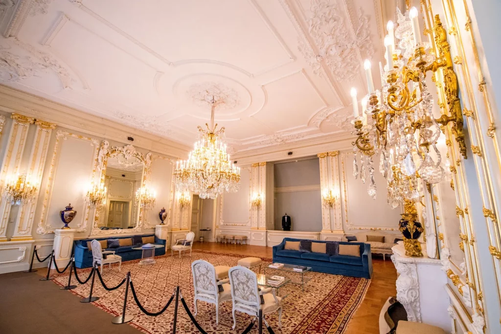 Los espacios interiores del Palacio están repletos de historia y mucho lujo. Son ambientes amplios y muy elegantes que se caracterizan por seguir un estilo de decoración muy rococó.