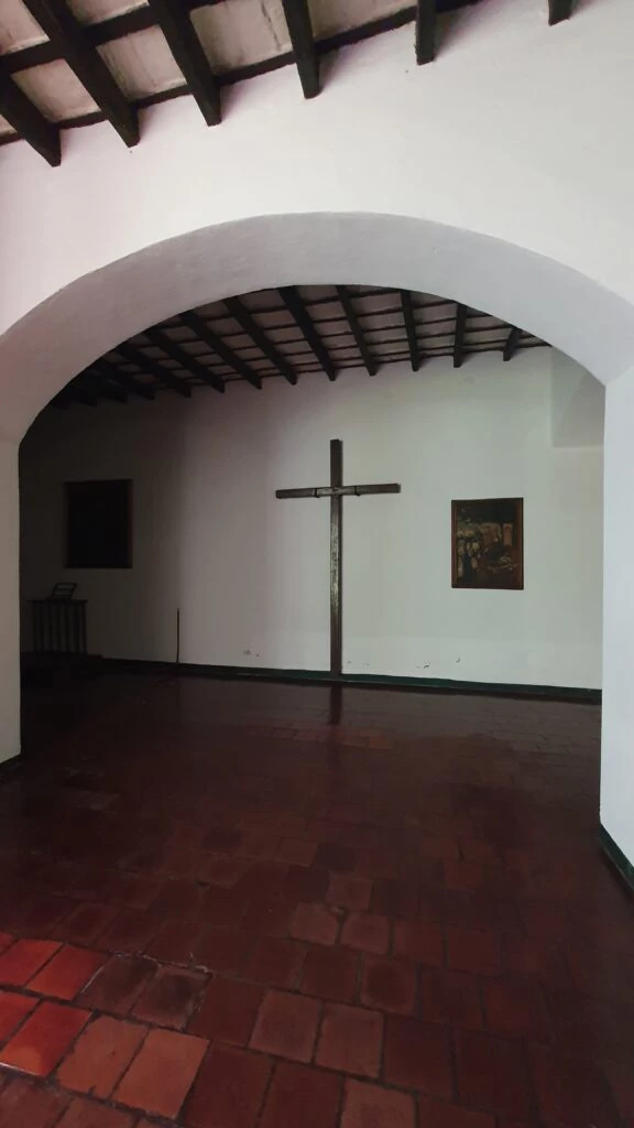 En una de sus paredes, cuelga la cruz de 47 kilos que algunos, a modo de penitencia, cargaban sobre el hombro para dar vueltas a uno de los patios interiores de la Casa.