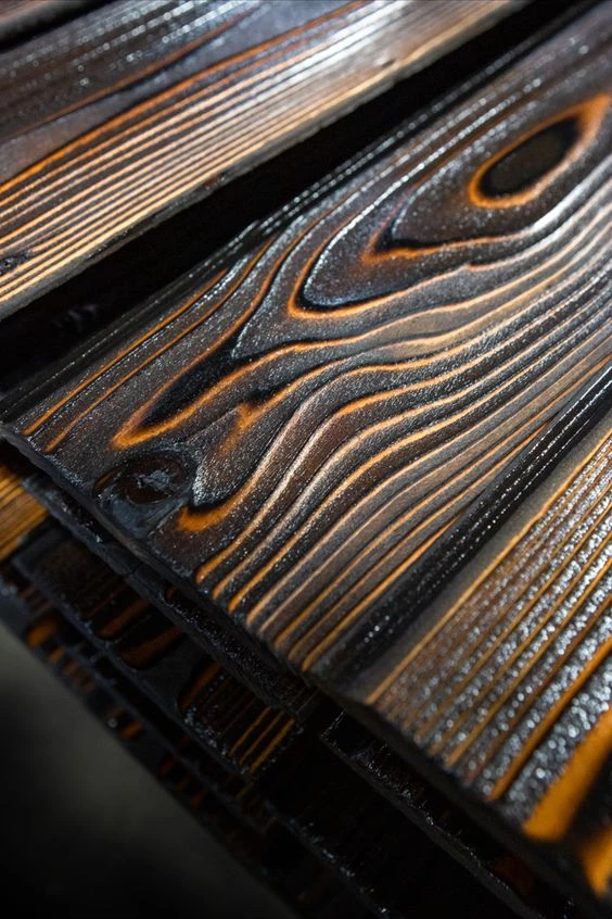 También conocida como Shou-Sugi-Ban, esta técnica data del siglo XVI y su nombre proviene del “yaki” (quemado) y “sugi” (ciprés). Hoy se suelen utilizar tilo, pino, arce o roble.