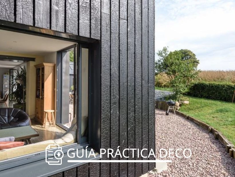 La técnica consiste en quemar o carbonizar la madera. Esto, además generar un original acabado, contribuye a una mayor vida útil.