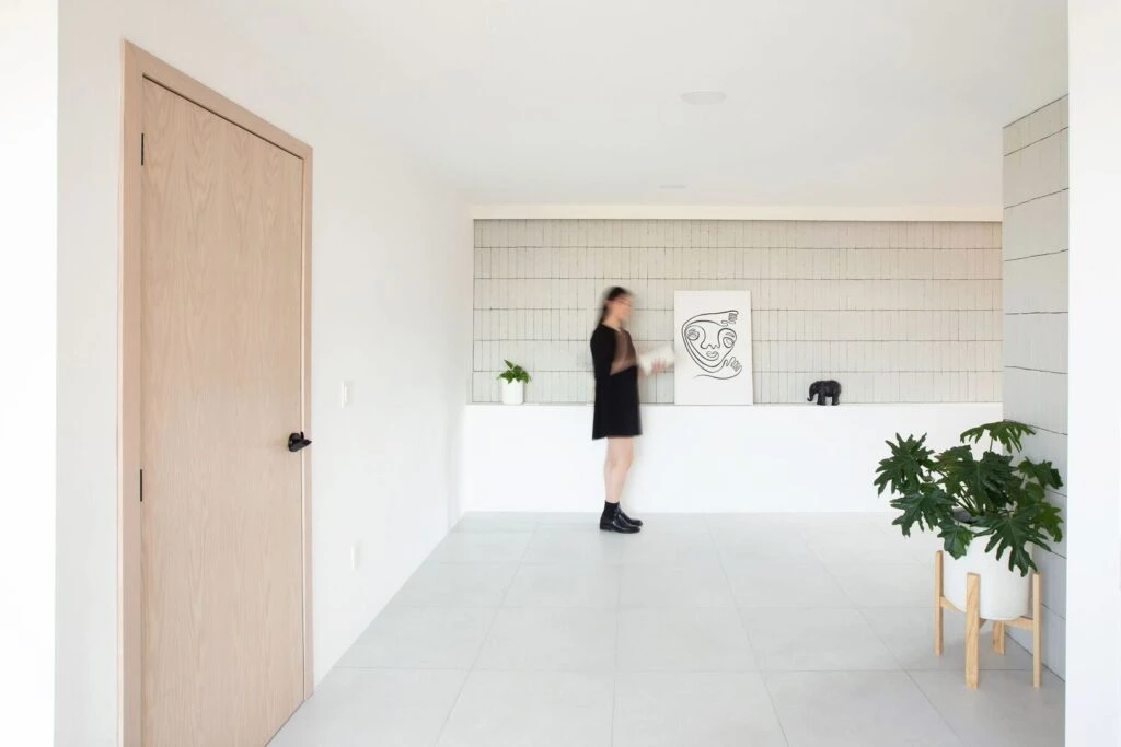 Amplias entradas de luz al interior bañan las superficies, donde la materialidad en tonos claros refleja la luminosidad y genera diferentes ambientes con sus distintos usos.