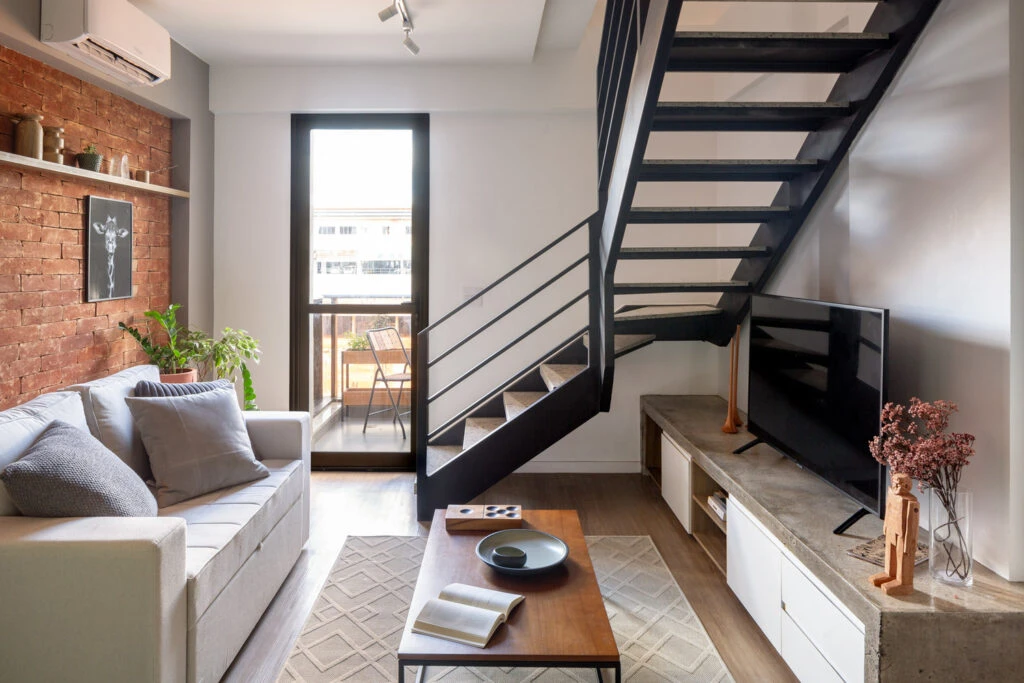 Bautizado "Olivia", este departamento tipo dúplex tiene un área total de 48 metros cuadrados y está ubicado en Guara, un barrio de Brasilia, Brasil.