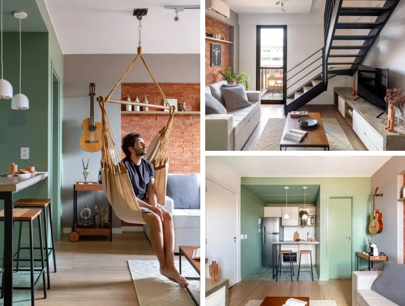 Bautizado "Olivia", este departamento tipo dúplex tiene un área total de 48 metros cuadrados y está ubicado en Guara, un barrio de Brasilia, Brasil.