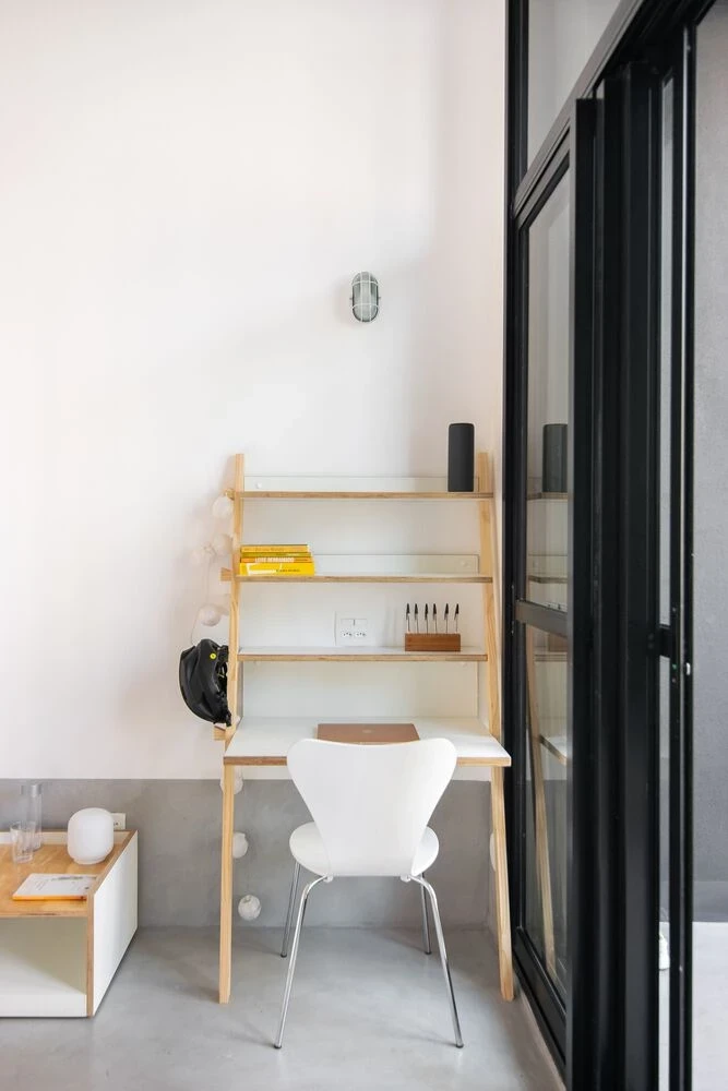 Y, para completar, una mesa de estantería que puede usarse como escritorio, tocador o barra, adaptándose a las necesidades del día a día.