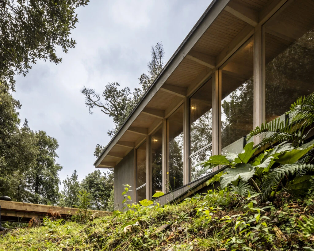 Lo primero fue registrar cada árbol. Uno por uno: su posición, su tamaño, su presencia. ¿La razón? Buscar el punto justo donde levantar la casa sin alterar el paisaje, y mejor aún, poniéndolo en valor. Nada de talar o modificar porque sí. Acá el diseño nace del respeto por el entorno.