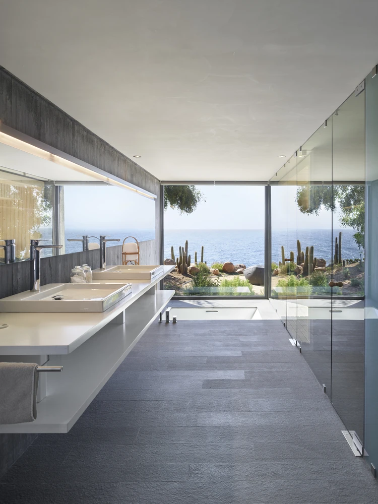 Bautizada "Punta Pite", esta casa chilena se ubica entre Zapallar y Papudo, a unos 150 km al norte de Santiago. El sitio, como su nombre indica, es una punta rocosa que entra en el mar.