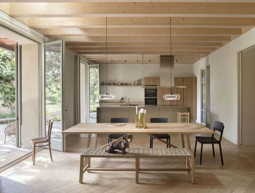 La planta baja fue pensada para compartir, donde el flujo interior y exterior y la multifuncionalidad acentúan la sensación de casa de campo.