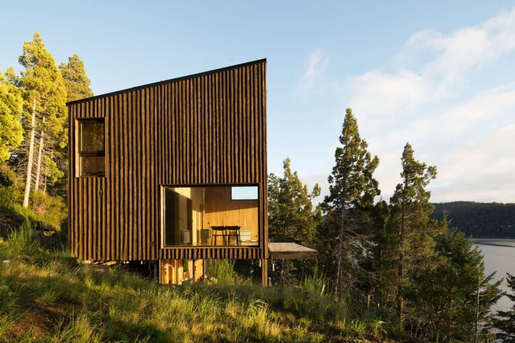 Terminada la vinculación casa-suelo, emerge la otra gran etapa de la obra: la casa propiamente dicha. Fue hecha en estructura tipo Platform frame de pino Oregon y revestimientos y estructuras vistas en ciprés.