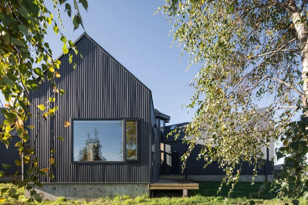 El exterior completamente en zinc prepintado ondulado y todas las ventanas de pvc termopanel.