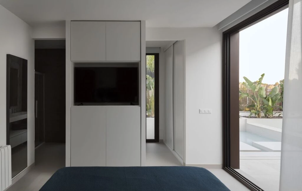 En líneas generales podemos decir que es una casa mediterránea de líneas minimalistas, donde la luz, el agua y espacio exterior cobran principal protagonismo.