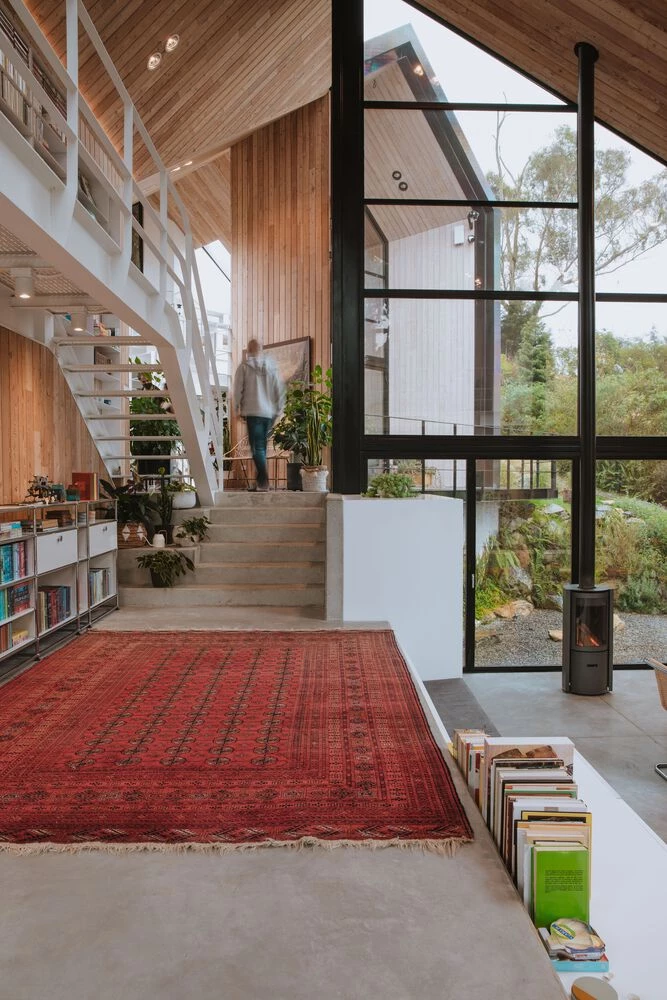 La casa es una caja negra en su exterior pero con maderas claras en todo su interior, buscando ricos contrastes y texturas.