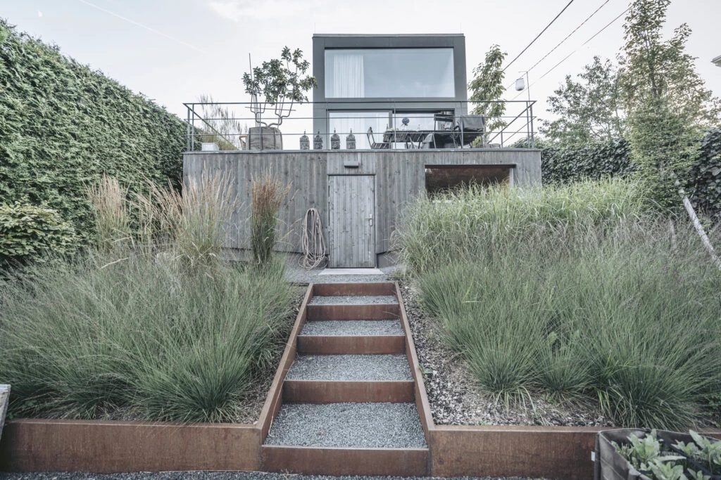 Para crear privacidad, la casa se cerró completamente en los lados, mientras que los amplios ventanales en la parte delantera y trasera garantizan la máxima apertura.