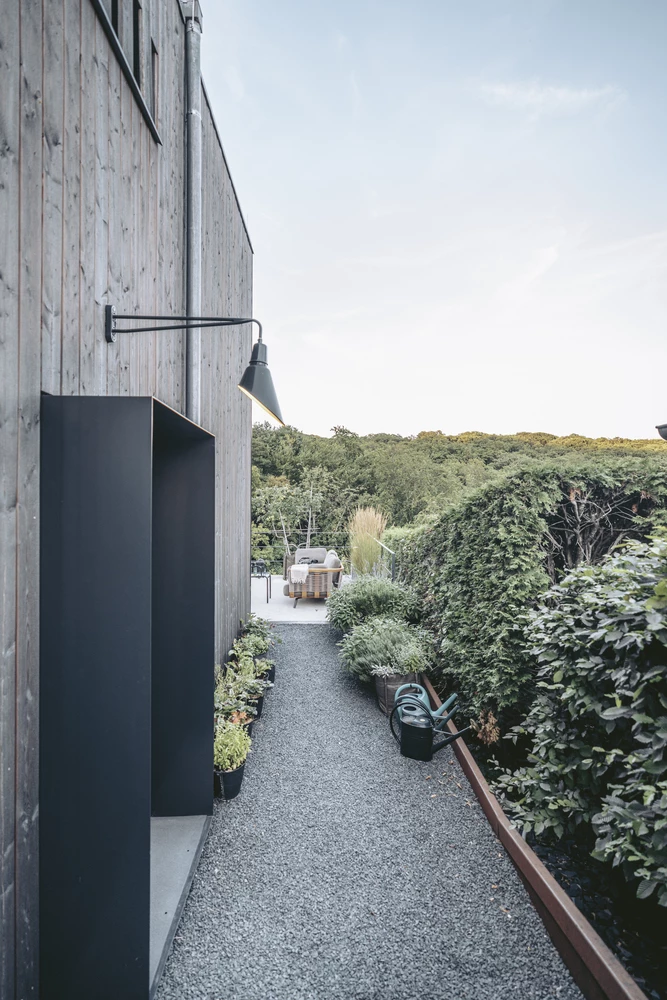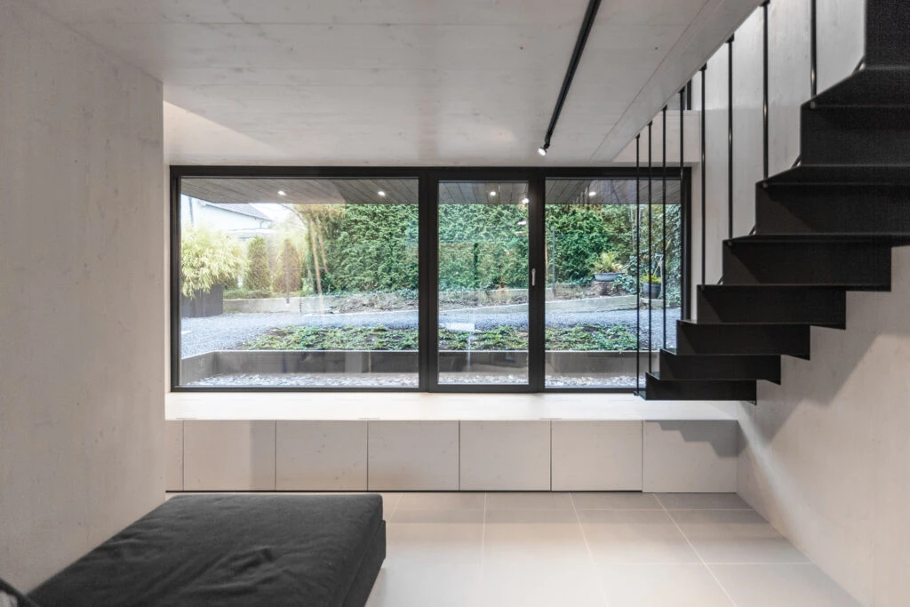 Como la casa tiene una pendiente pronunciada y poco espacio, invitaba a ideas creativas. La tarea arquitectónica más importante fue capturar la fantástica vista de los bosques y crear una conexión máxima con la naturaleza.