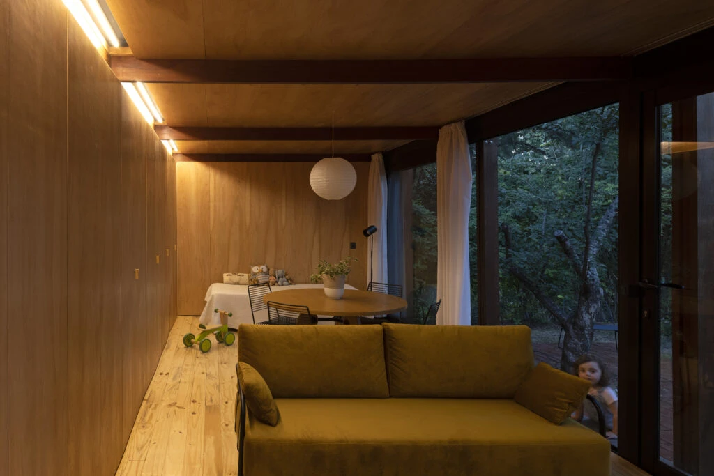 El espacio interior es uno solo, amplio, pero con la magia de poder subdividirse según lo que se necesite en cada momento.