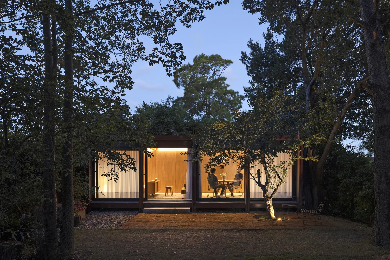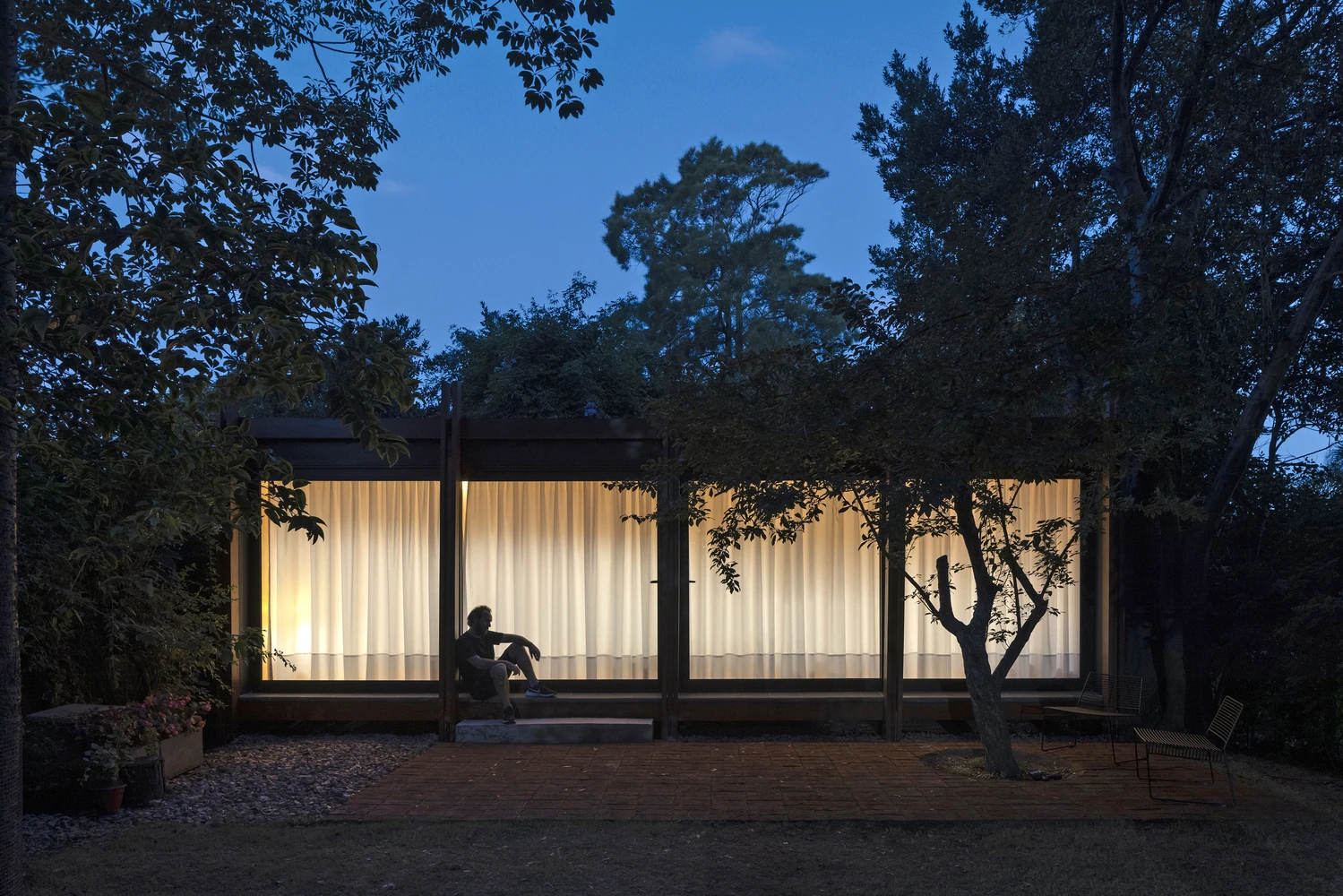 Un detalle que nos encanta: los espacios de servicio como la cocina, el baño y los placares se esconden detrás de puertas plegables. Así, una simple pared se transforma en una fachada interior dinámica y habitable, que muta todo el tiempo.