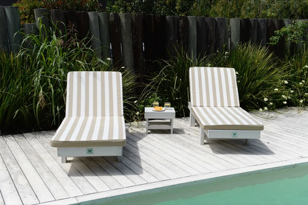 Luti Antelo, diseñadora y creadora de contenidos (@veveyblog) junto a su mesa de exteriores.