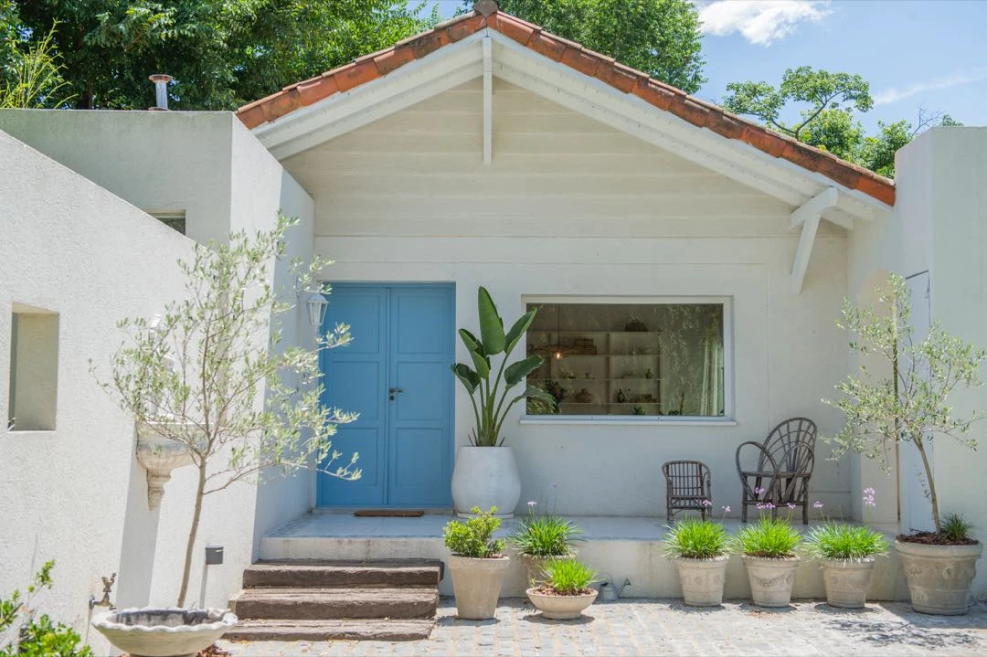 Adoquines, postigos y tejas le dan identidad a la fachada de la casa de la creadora de contenido Luti Antelo.