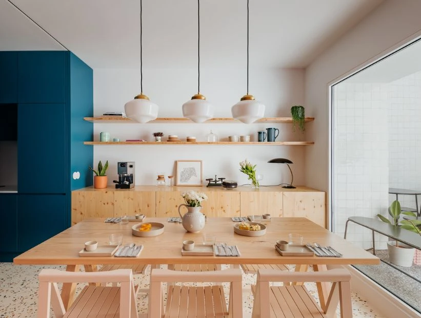 Esa pieza bisagra corresponde al núcleo de la cocina que, mediante dos puertas corredizas, permite establecer la conexión entre living y el comedor.