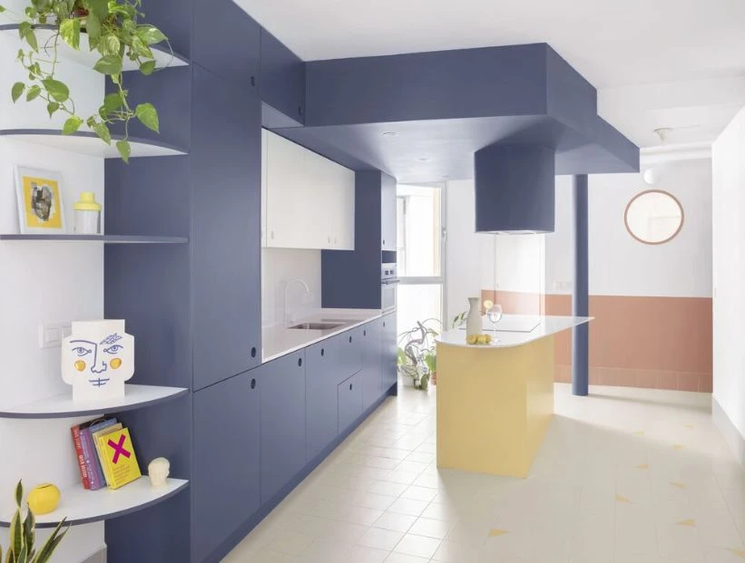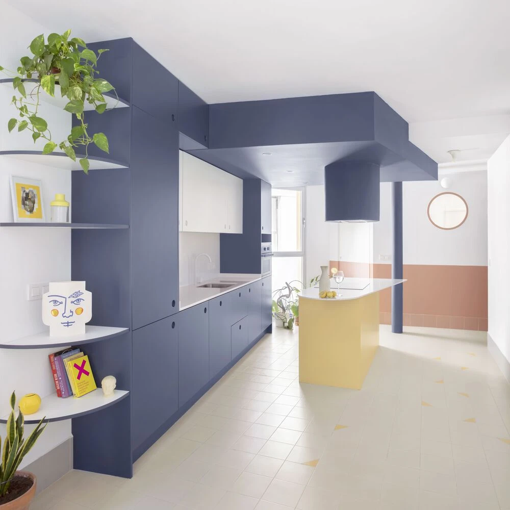 Así, en el proyecto, el recurso del color se convierte en lo más importante de la intervención con la finalidad de encontrar para sus propietarios un hogar en el que poder colocar todos sus objetos de manera cómoda, y recibir a amigos y familia en una casa más afín a ellos de lo que antes era.