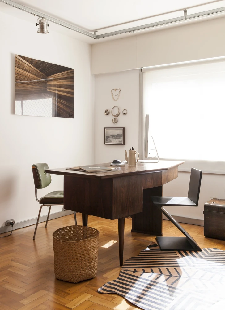 La combinación de muebles de diseño clásico y contemporáneo, cuidadosamente seleccionados, complementa la atmósfera de innovación y funcionalidad del espacio.