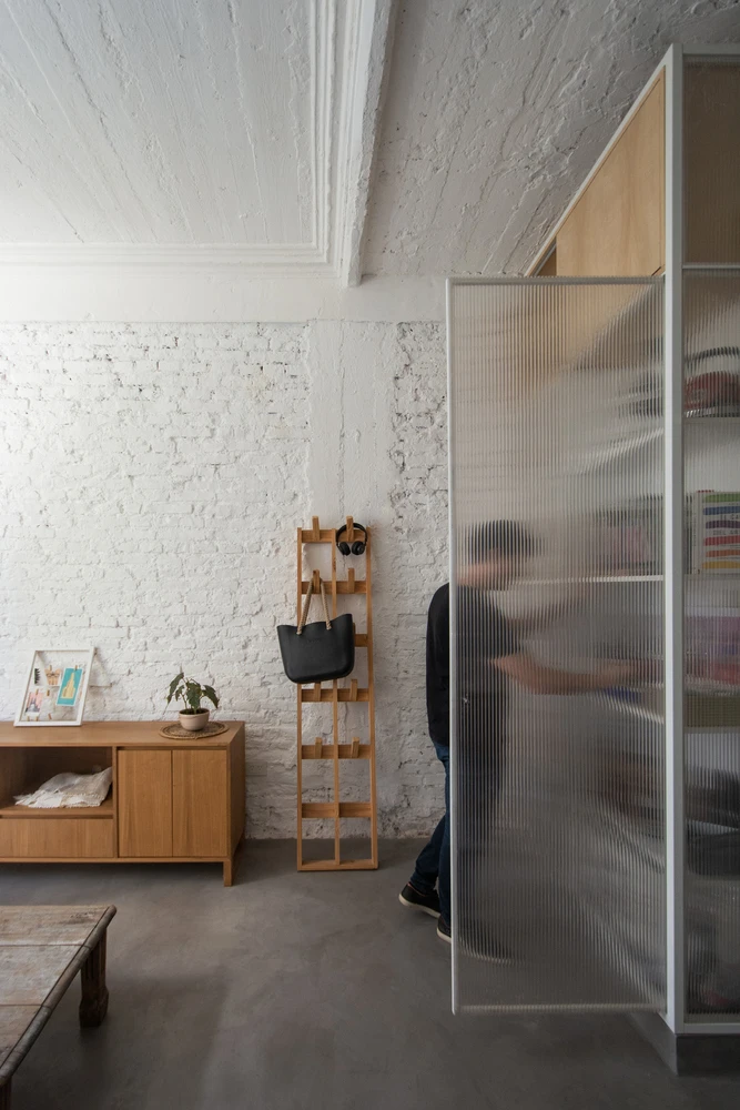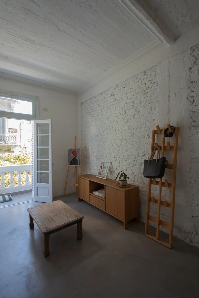 El destino del departamento era alojar una casa permanente y un espacio de desarrollo profesional para una diseñadora textil. Esto requería una capacidad de flexibilidad y un adecuado espacio de guardado.