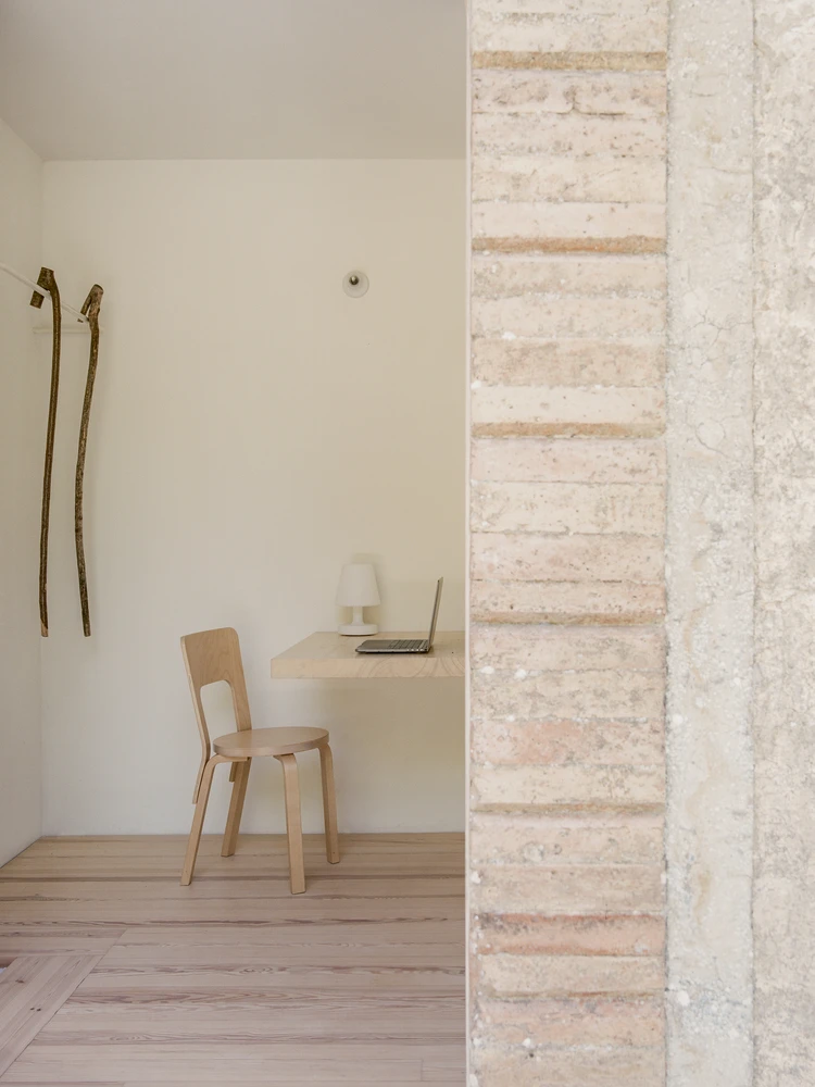 En lugar purista y tranquilo, de la naturaleza a la arquitectura. Inspirada en el lenguaje de diseño clásico, "Casa Aristo" se se redujo a lo esencial y el resultado es efectivo: desde el ladrillo original y las estructuras claras y lineales de las habitaciones, hasta los colores suaves y naturales y el mobiliario sencillo pero de alta calidad.