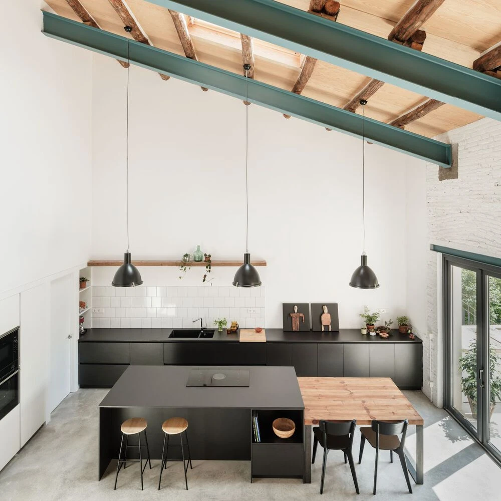 El proyecto a cargo del estudio de arquitectura Judit Falgueras plantea la nueva estructura metálica como un elemento clave que forma el forjado de primera planta y la rehabilitación de la cubierta, sustituyendo la antigua cercha española en mal estado por una viga Vierendeel que ilumina el distribuidor/estudio en la planta baja.