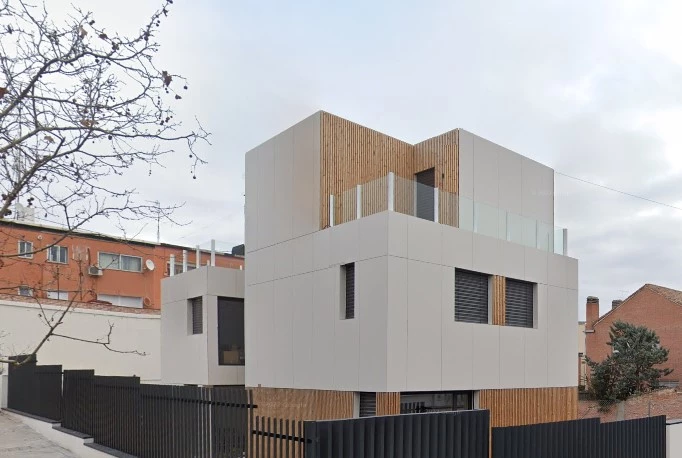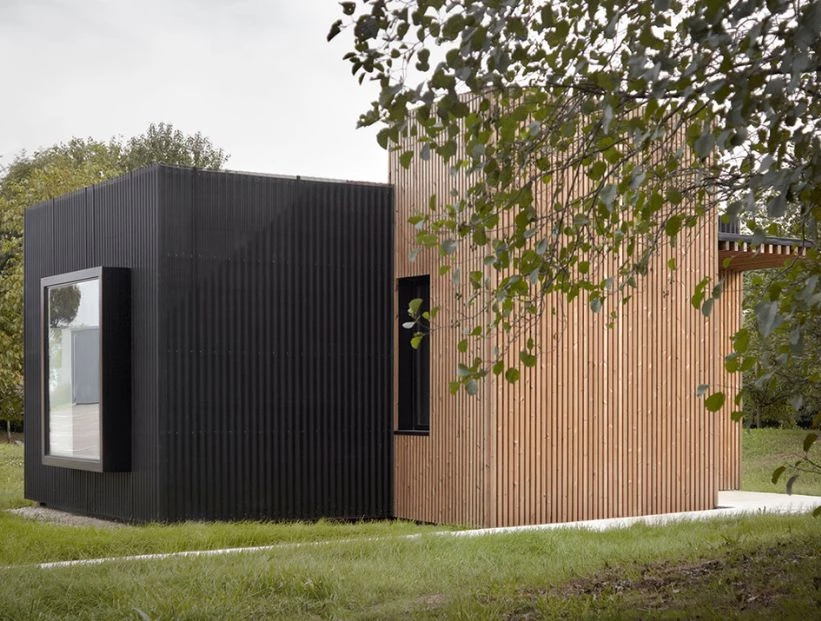 Las casas pueden tener dos líneas de materiales diferentes: el acero y el CLT de madera. En el primer caso, la estructura metálica está formada por un panel frigorífico de Green Steel y fachada ventilada con diversas opciones: cerámico, madera sostenible o metal. En interiores se incorpora un aislamiento térmico en textil reciclado. En el segundo caso, se reemplaza el panel metálico por un muro de madera que ayuda a descarbonizar, al ser un contenedor que absorbe CO2. Esta opción permite que los módulos sean más ligeros.