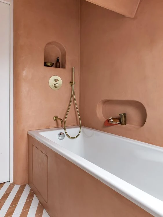 Ya venía pisando fuerte en los últimos años ¡y por fin ocupa su lugar privilegiado, incluso en el baño! Para que tengas una idea se trata de una tonalidad natural a medio camino entre el rojo y el marrón. También está emparentado con los tonos arena, pero también con otros colores más cálidos, como el granate o el magenta.
